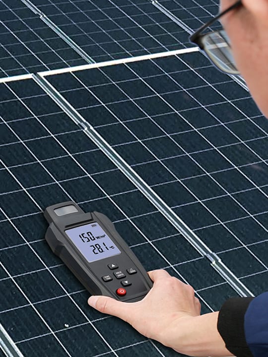 Whether working on a roof-mounted system or on a large field installation. The Solar Irradiance Meter is the single-handed solution that every solar installer and technician needs in their tool bag
