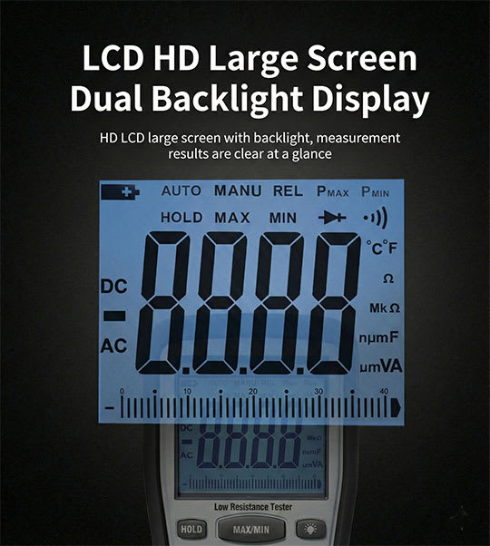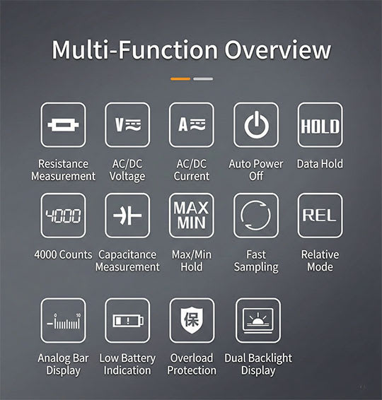 -- with multimeter functions, like AC / DC Voltage, current, Resistance, Capacitance, MAX / MiN recording etc.