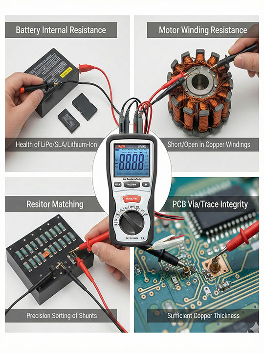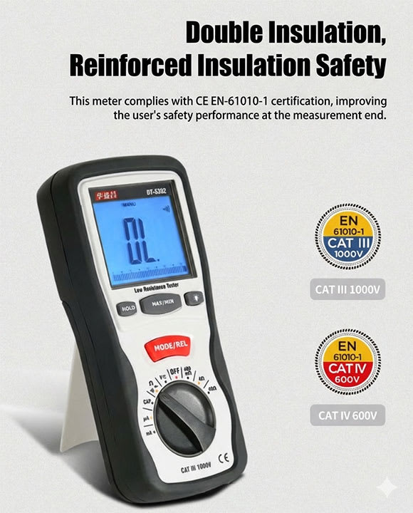 A milliohm meter is a precision instrument designed to measure very low electrical resistance, typically ranging from 1 milliohm (0.001 Ω) to a few ohms—values that are too small for standard multimeters to measure accurately.