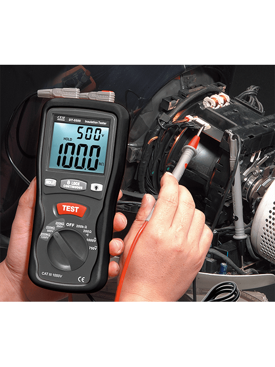 When doing power installation, 5505 can provide some special help. When doing insulation test, it can provide 125V,250V, 500V and 1000V source for the test and under each range it can supply more 1mA current to feet the capacitance load. With the auto-range function, it can measure up to 4000 MegaOhm with the resolution of 1Kohm. These characteristics are also specified in the safety regulations in CE document.