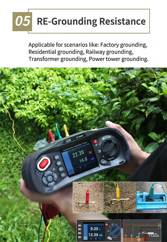 The DT-6650 is a rugged, portable multifunction installation tester (MFT) that meets international safety standard IEC 60364. Electricians and inspection engineers use it mainly to check that electrical installations are safe and working properly.
