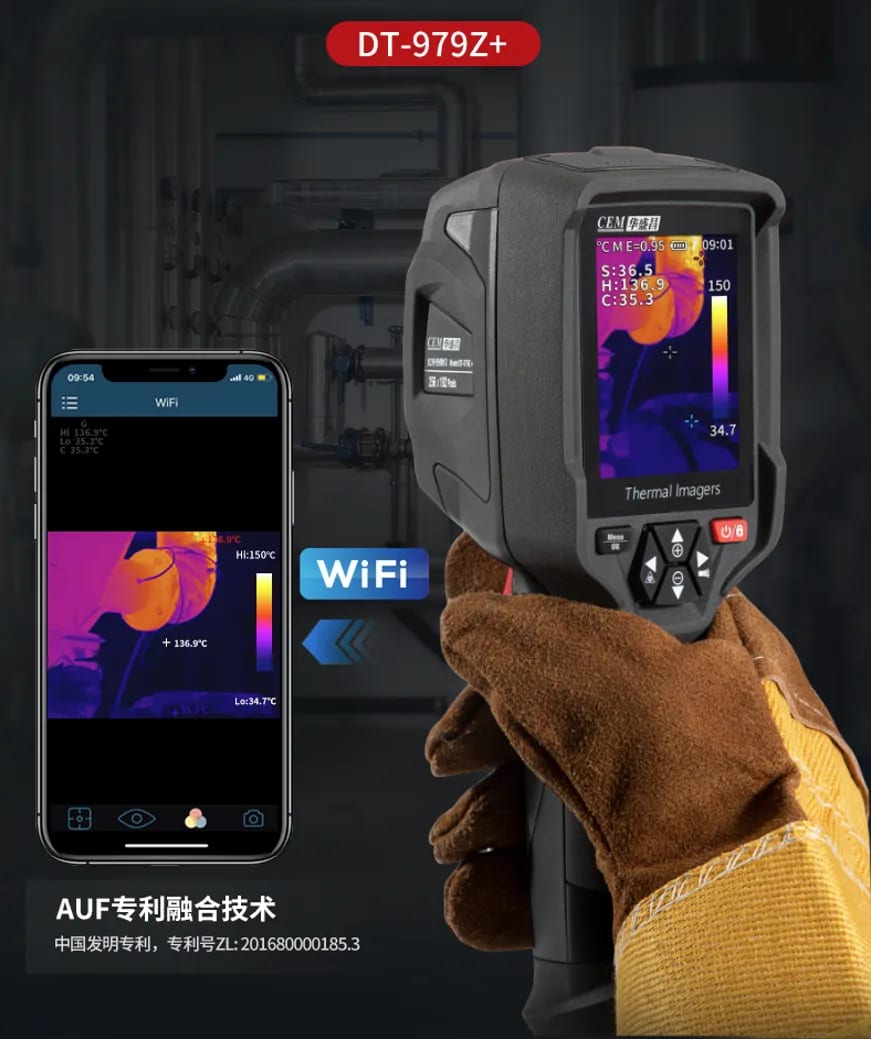 The DT-874Z+ features an ultra-high infrared resolution of 320×240, while the DT-979Z+ offers a high-resolution 256×192 infrared sensor. Combined with a 3-megapixel visible light camera and AUF patented fusion technology (China Invention Patent No. ZL:201680000185.3), these devices can capture even the slightest temperature differences in real time. With a temperature measurement accuracy of ±2°C / ±2%, they support full-range monitoring across a wide temperature span of -20°C to 550°C.