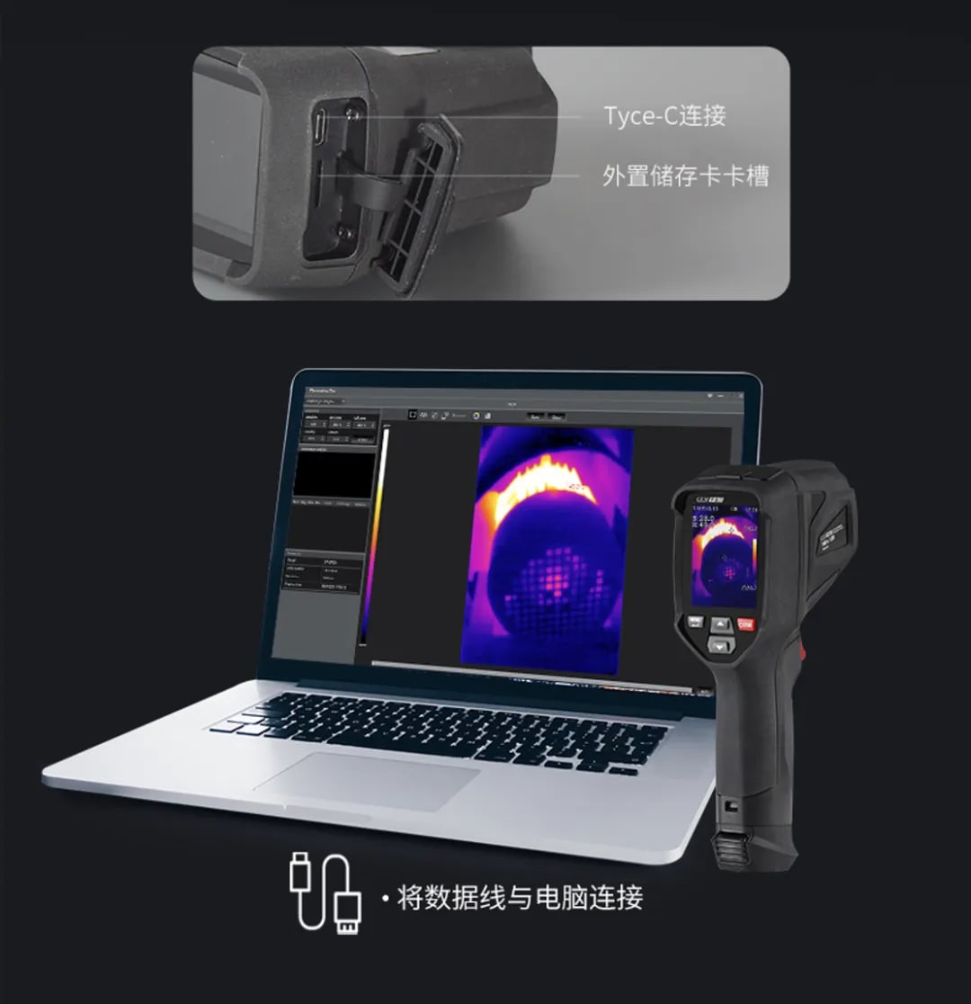 The detected data can be transmitted to smartphones and computers via WiFi (DT-979Z+) or USB. Using the ThermoViewPro professional free software, users can perform point analysis, line analysis, and area analysis. After analysis, the data can be exported in various formats, such as images, PDFs, or Excel spreadsheets, providing a more comprehensive analysis of temperature changes at heat source points in thermal images.